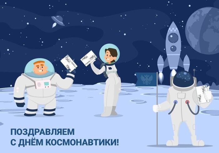 креатив, связанный с ракетами, планетами и космонавтами, особенно ко Дню