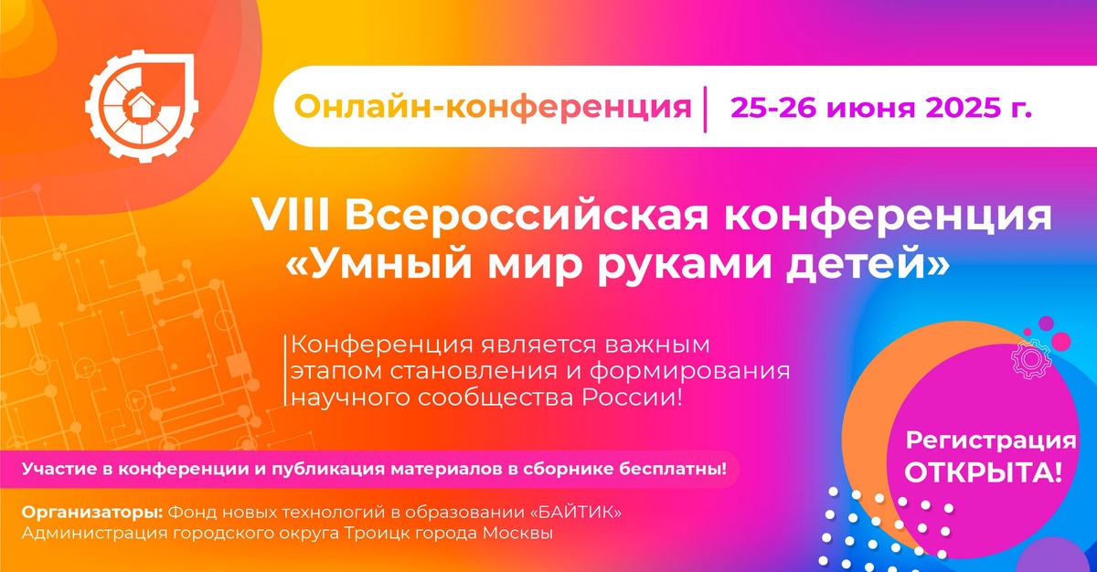πΠΡΠΊΡΡΠ»Π°ΡΡ ΡΠ΅Π³ΠΈΡΡΡΠ°ΡΠΈΡ Π½Π° VIII ΠΡΠ΅ΡΠΎΡΡΠΈΠΉΡΠΊΡΡ ΠΊΠΎΠ½ΡΠ΅ΡΠ΅Π½ΡΠΈΡ "Π£ΠΌΠ½ΡΠΉ ΠΌΠΈΡ ΡΡΠΊΠ°ΠΌΠΈ Π΄Π΅ΡΠ΅ΠΉ " ΠΠ°ΡΡ ΠΏΡΠΎΠ²Π΅Π΄Π΅Π½ΠΈΡ: 25-26 ΠΈΡΠ½Ρ 2025 Π³ΠΎΠ΄Π° Π€ΠΎΡΠΌΠ°Ρ ΠΏΡΠΎΠ²Π΅Π΄Π΅Π½ΠΈΡ: ΠΎΠ½Π»Π°ΠΉΠ½ ΠΠ»Ρ ΠΊΠΎΠ³ΠΎ: ΡΠΊΠΎΠ»ΡΠ½ΠΈΠΊΠΈ ΠΈ ΡΡΡΠ΄Π΅Π½ΡΡ Π²ΡΠ·ΠΎΠ² ΠΈ ΠΊΠΎΠ»Π»Π΅Π΄ΠΆΠ΅ΠΉ ΠΈΠ· ΡΠ°Π·Π½ΡΡ