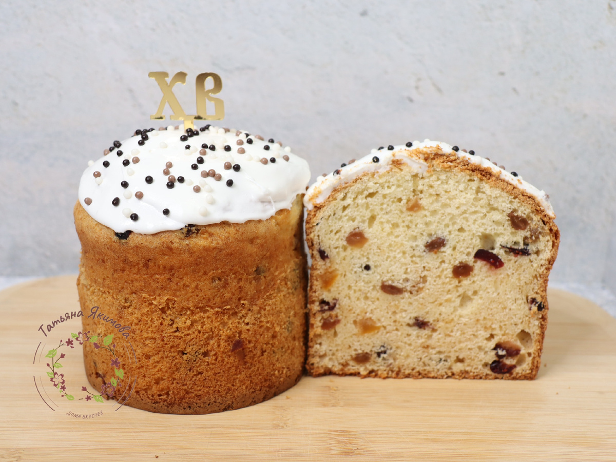 Куличи получаются ровными с небольшой трещиной, свойственной кексовому тесту.
