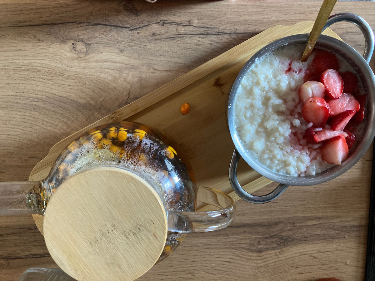 У мужа сегодня рисовая каша на кокосовом молоке клубника чай с облепихой лимон