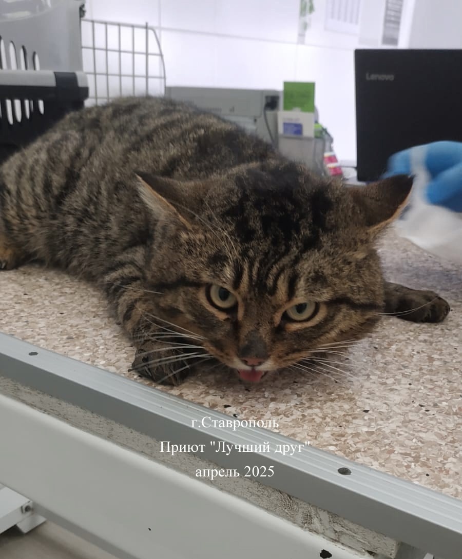 Большой красивый кот жил и кормился при организации в Демино. Ходил по улицам свободно и в один не прекрасный день доходился до неприятностей... Несколько дней его не было на базе, потом приполз к людям, подволакивая переднюю лапу. Кота отвезли в клинику, у него перелом третьего ребра, пулевое ранение из пневматики и, как следствие, контузия плечевого нерва. Лечение Леопольду выписали, шанс на восстановление подвижности лапы есть, но для этого понадобится время.