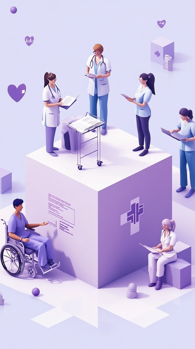 Создано на основе запроса: Create a vertical poster where the nurses are presented as 3D cartoon characters. They are standing and working on top of a large 3D cube.The scene should include five nurses, each performing different tasks:One nurse reviewing a medical report,One nurse preparing an injection,One nurse accompanying a patient in a wheelchair,One nurse sitting at a computer reviewing medical records,One nurse casually walking --- Автоперевод: Создайте вертикальный плакат, на котором медсестры представлены как 3D -мультфильмы. Как тебе генерация? 🤔 https://dzen.ru/id/65c0c65c86e4f837c27b24d7 #ИИ #AI #нейросеть #midjourney #art