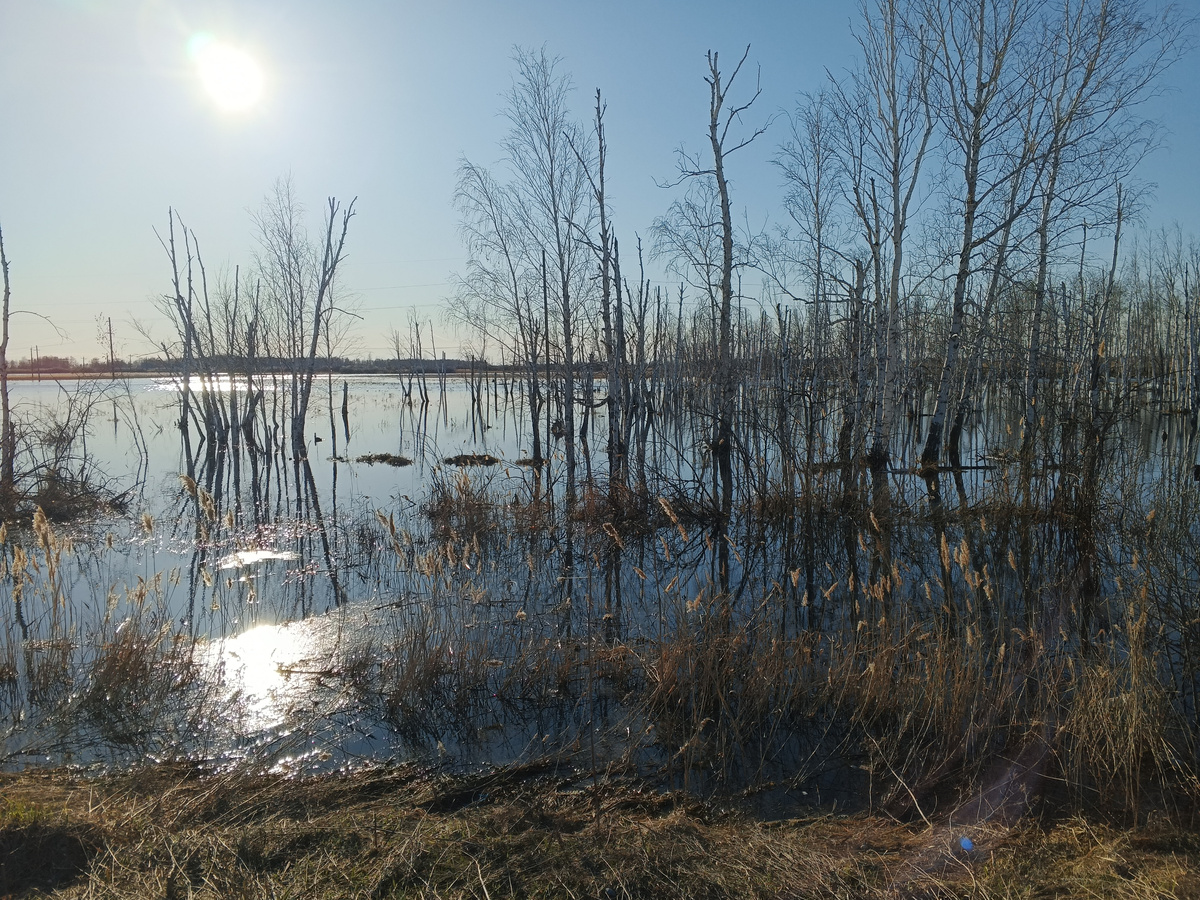 Воды на полях уже прибавляется с каждым днем все больше и больше. Не пойму, откуда такие разливы начинаются. Надеюсь, что нас не затопит. Радостные рыбаки уже начинают смотреть на разливах рыбу.