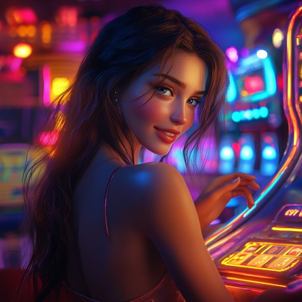 Создано на основе запроса: 3d game style, beautiful girl enjoy game in casino, glowing and shining