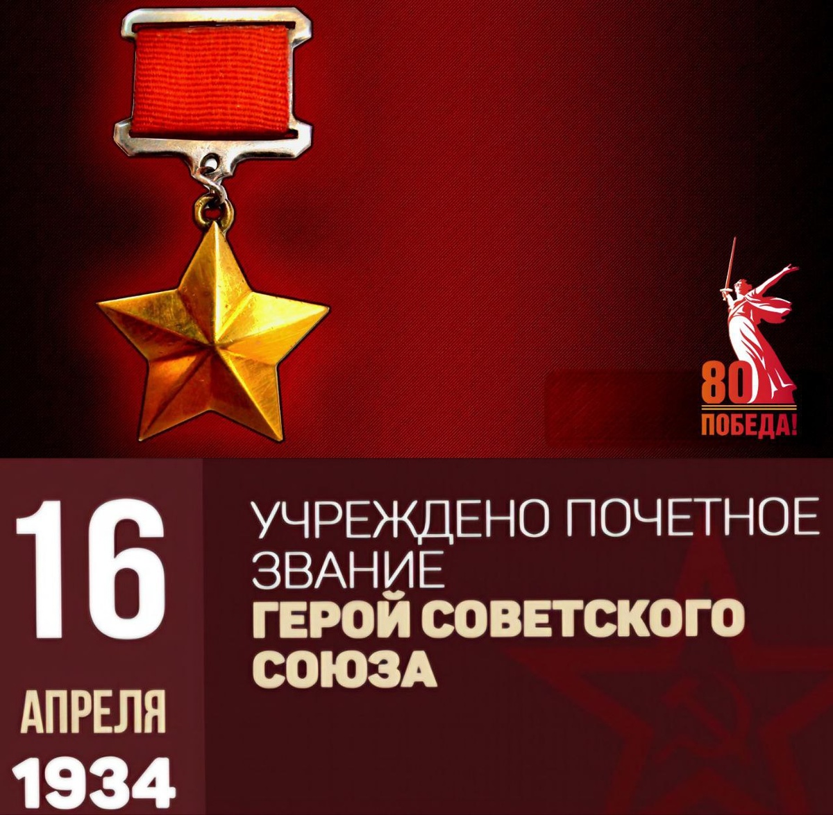 📆16 апреля 1934 г. было принято постановление Центрального Исполнительного Комитета СССР «Об установлении высшей степени отличия – звания Героя Советского Союза». 🔖В документе говорилось, что «Звание Героя Советского Союза является высшей степенью отличия и присваивается за личные или коллективные заслуги перед Советским государством и обществом, связанные с совершением геройского подвига». Согласно Постановлению Героям Советского Союза выдавалась особая грамота ЦИК СССР. ✔️20 апреля 1934 г. было подписано первое постановление ЦИК СССР о присвоении этого звания семи лётчикам, проявившим мужество и отвагу при спасении экипажа ледокола «Челюскин», потерпевшего бедствие во льдах Северного Ледовитого океана. Героями стали А. В. Ляпидевский, М. В. Водопьянов, И. Д. Доронин, Н. П. Каманин, С. А. Леваневский, В. С. Молоков, М. Т. Слепнёв. Восьмым Героем Советского Союза 28 сентября 1934 г. стал известный лётчик-испытатель М. М. Громов. ❗️Первое присвоение звания Героя Советского Союза з