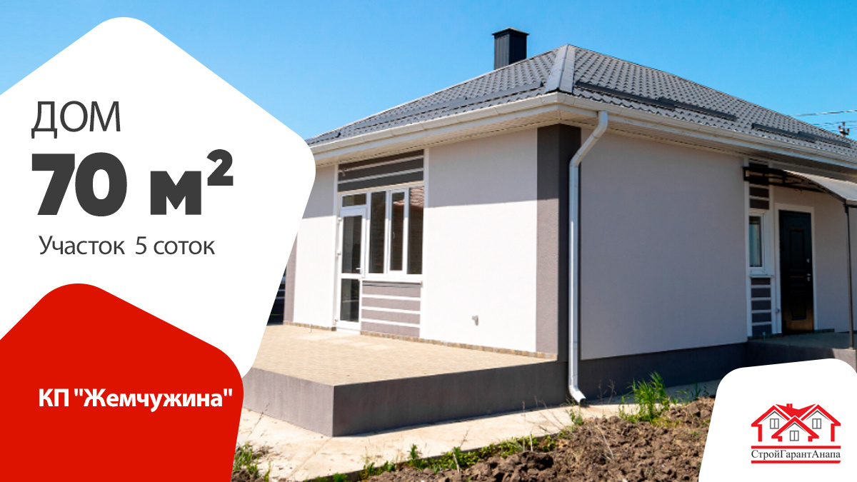 ✨ Расположение - п. Цыбанобалка г-к Анапа ЖК "Жемчужина" ✨ Площадь дома - 70 м² ✨ Участок - 5 соток 🔸 Фасад дома отделан декоративной штукатурка Baumit 🔸 Вокруг дома залита отмостка. 🔸 Фундамент 70 см в землю, связан монолитной плитой 16 см. 🔸 Материал стен - газоблок плотностью D500 250мм, 🔸 Утеплитель - каменная вата 30 мм. 🔸 Крыша - металлочерепица. 🔸 Коммуникации - свет 15 кВт, центральная вода, септик 5 кб. 🔸 Отопление - двухконтурный электрический котел, радиаторы отопления. 🔸 В трех зонах установлен теплый пол Один из компактных коттеджей 🏠 в нашей линейки проектов – это дом площадью 70 кв.м. Он подходит для семьи из 2-х, 3-х человек. Идеально экономное решение как и по цене так и по экономическим показателям на дальнейшую эксплуатацию. Очень хорошая планировка, все компактно и эргономично. Здесь уютно расположились прихожая, коридор, две спальни, санузел и кухня-гостиная. В коридоре имеется складная лестница для подъема на чердак. Есть и достаточно большая терраса пл