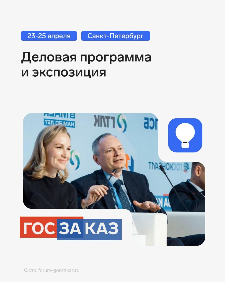 Три причины посетить форум-выставку «ГОСЗАКАЗ» Продолжаем готовиться к главному мероприятию для участников закупок, которое пройдет с 23 по 25 апреля в Санкт-Петербурге. Будем рады с вами увидеться на форум-выставке. А пока расскажем, почему ее стоит посетить. 🔵Насыщенная деловая программа На форум-выставку приедут больше 200 спикеров — от представителей власти до топ-менеджеров корпораций. Эксперты обсудят настоящее и будущее контрактной системы: изменения в законодательстве, специфику отраслевых закупок, перевод тендеров в «цифру» и ход импортозамещения. 🔵Множество вариантов получения знаний В течение трех дней вы сможете посетить дискуссии, тематические заседания, публичные обсуждения, лекторий и мастер-классы. Изучайте программу и выстраивайте свой образовательный «маршрут» по выставке так, как вам хочется. 🔵Площадка для нетворкинга ГОСЗАКАЗ — это не только форум, но и масштабная экспозиция. Приезжайте, чтобы познакомиться с продукцией других поставщиков, обменяться конта
