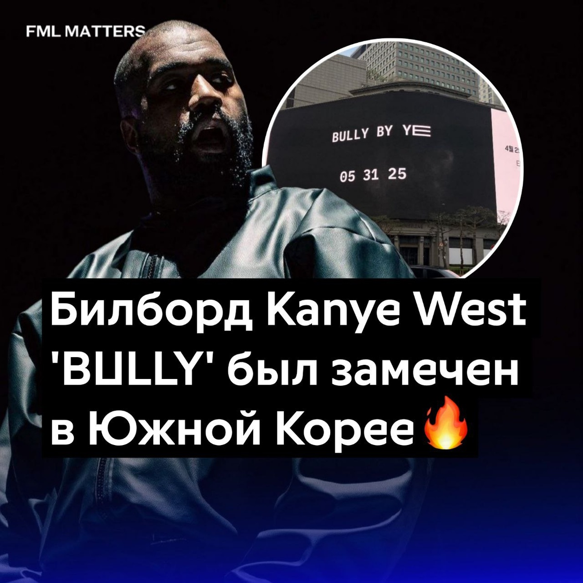 ☄️ БИЛБОРД KANYE WEST БЫЛ ЗАМЕЧЕН В ЮЖНОЙ КОРЕЕ! Йе представит свой новый альбом «BULLY» на прослушивании 31 мая на стадионе Мунхак, вместимостью 50 тысяч человек. 💀 FML MATTERS