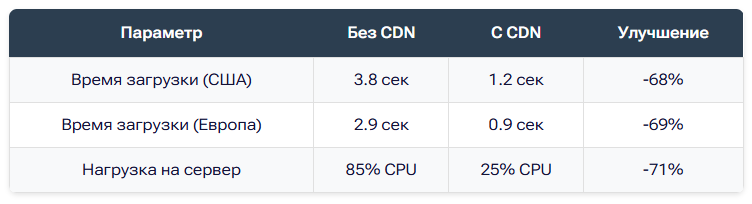 ✅ Снижение нагрузки на основной сервер на 60-80%