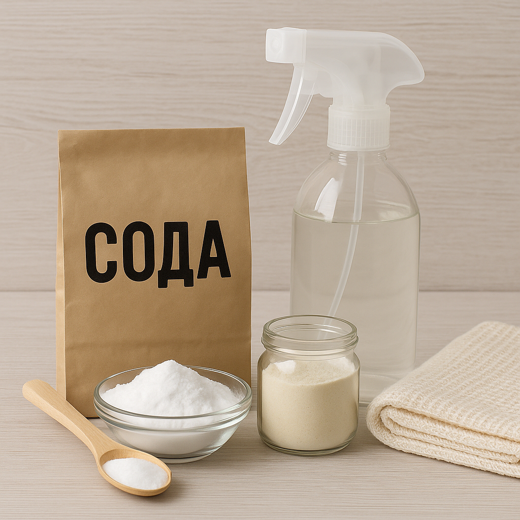 Обычная столовая сода – это настоящее чудо. Она стоит дёшево, она универсальна и экологически чистая. Сода отлично подходит для освежения ковров, удаления пятен и отбеливания штор.