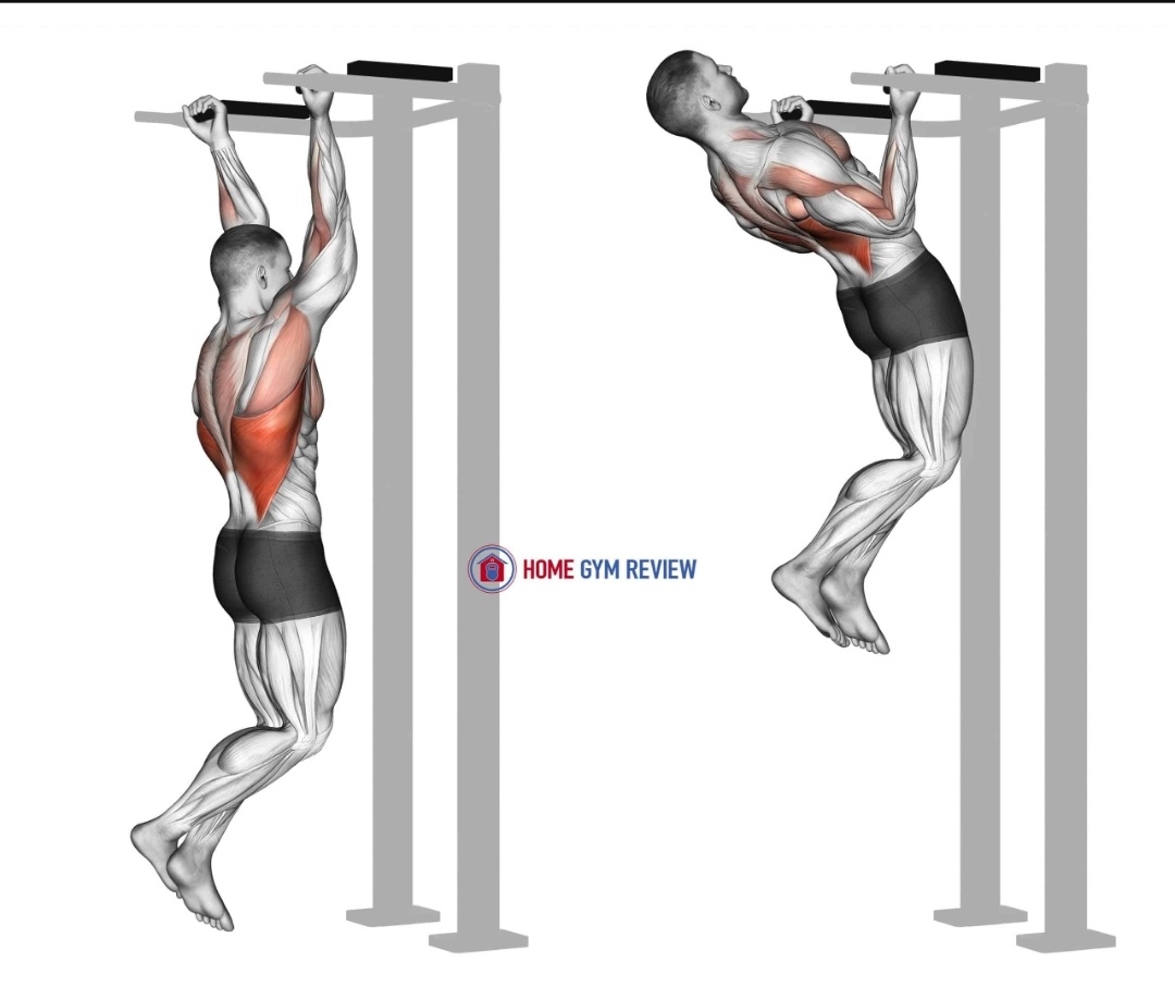 - Как выполнять: Закрепите резиновую ленту на перекладине, проденьте в нее стопу или колено. Лента снизит нагрузку, помогая подниматься вверх.