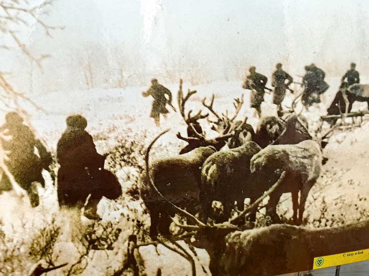 В Великой Отечественной войне 1941-1945 годов принимали участие не только люди, но и животные. Сохранилось много историй о подвигах самого главного четвероногого друга человека - собаки. Они и раненых с поля боя выносили, и мины искали, и танки подрывали, и даже перевозили бойцов и боеприпасы на собачьих упряжках. После войны стало известно, что воевать пришлось более 600 тысячам собак, 3 миллионам лошадей и примерно тысяче верблюдов. А еще в ряды Рабоче-крестьянской Красной Армии в годы войны было призвано около 12 тысяч северных оленей. В 1941 году фашисты наступали по нескольким направлениям, в их числе был Мурманск. Его порт, который не замерзал зимой, был незаменимым форпостом, стоявшим костью в горле у нацистов. Массированное наступление шло и на Карелию. Поэтому в ноябре 1941 года в ряды 14-й Карельской армии призвали первых оленеводов вместе со своими ездовыми оленями. Формировались оленетранспортные подразделения и в Мурманской области. Для выполнения всех потребностей фронта