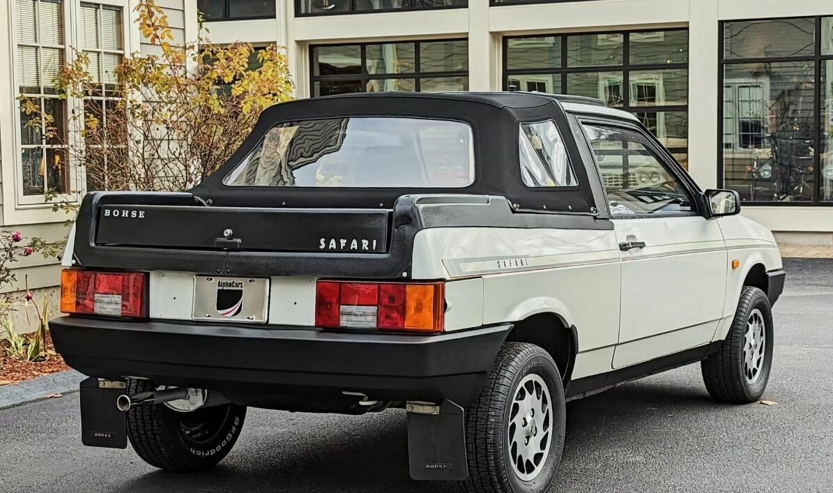 Возможно этот единорог, созданный на базе небезызвестной LADA Samara, не сможет получить премию «Дизайн года», зато он создавался совместно с самым престижным немецким брендом. LADA никогда не возглавляла рейтингов самых роскошных, технологичных или качественных автомобилей, но эта конкретная модель – совсем другое дело. Построенная в Западной Германии, она является результатом сотрудничества нескольких автомобильных компаний, в результате чего получился причудливый гибрид седана, кабриолета и пикапа. Bohse была небольшой немецкой компанией по производству кузовных деталей. Она взяла за основу компактную LADA Samara и создала то, что вы видите на фотографиях, назвав это Safari. Вы не поверите, но Porsche тоже приложила руку к разработке машины, внеся свой вклад в настройку двигателя, трансмиссии и общий дизайн. Таким образом, этот странный автомобиль стал родственником таких грандов как Mercedes-Benz E500 и AUDI RS2 Avant. При этом краска осталась заводской, а на руле сохранился оригин