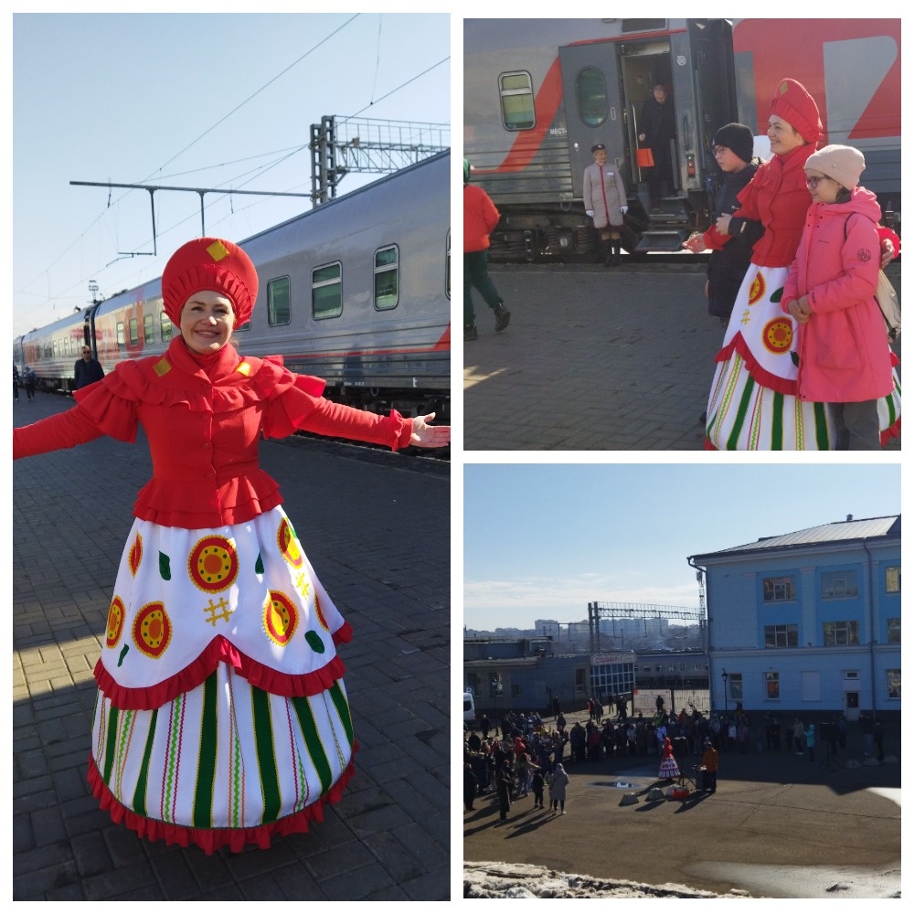 Поезд встретили ярко и радостно, с песнями и танцами. Все фотографировались с похожей на дымковскую игрушку веселой и доброжелательной кировчанкой.