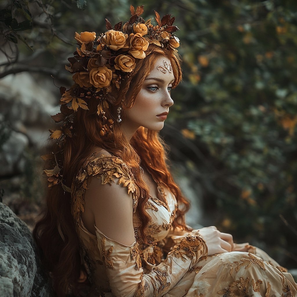 Создано на основе запроса: full lenght photography of the look in real life of Persephone goddess, high detailed