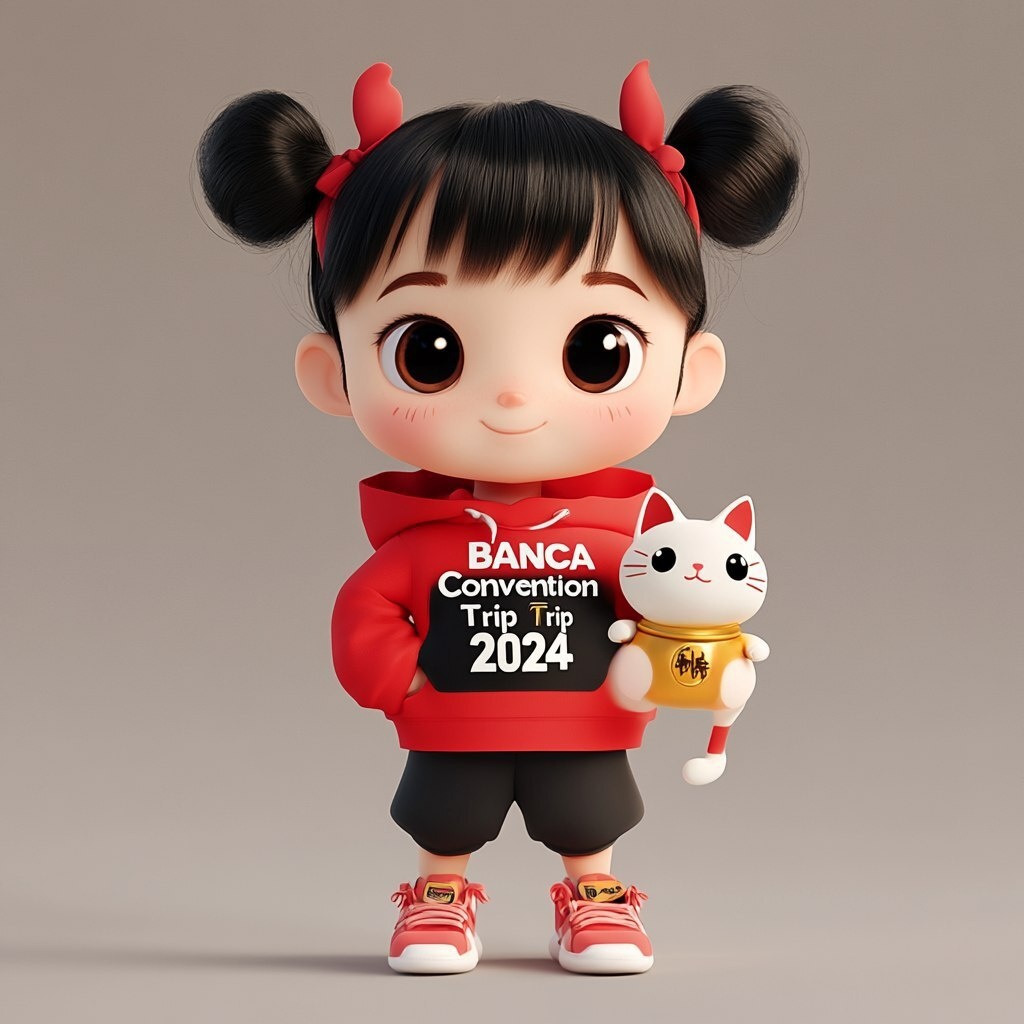 Создано на основе запроса: 3D modelling, clean background, face front , stand straight, little girl, cartoon style, round face, big head , black hair with red highlights, full body , shoes , wearing red hoodie with DBS logo, black T-shirt with "BANCA Convention Trip 2024" text, holding a japanese style lucky cat, vibrant colour --- Автоперевод: 3D-моделирование, чистый фон, спереди лица, стоять прямо, маленькая девочка, мультипликационное стиль, круглое лицо, большая голова, черные волосы с красными бликами, полное тело, обувь, в красную толстовку с капюшоном с логотипом DBS, черная футболка с текстом "Banca Convention Trip 2024", с японским стилем, счастливчи Красиво получилось? 🤔 https://dzen.ru/id/65c0c65c86e4f837c27b24d7 #ИИ #AI #нейросеть #midjourney #art