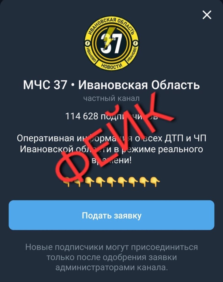 ❗️В Телеграм появился фейковый аккаунт МЧС Ивановской области
