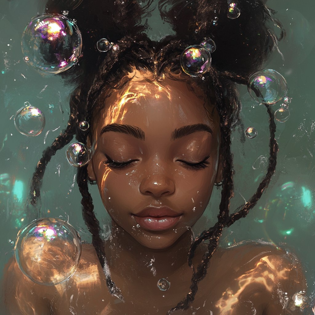 Создано на основе запроса: bathwater. Warm. Soap bubbles. Black girl with dreads.