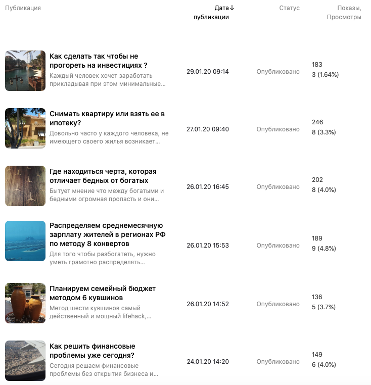 Недавно, абсолютно случайно, я зашла в старый архив своего канала и... залипла. Первая статья — январь 2020 года. Пять лет назад. Стоп. ПЯТЬ лет назад?! Ещё и ковидный год. Сначала не поверила. Пересмотрела всё: заголовки, обложки, даты. Да, всё на месте. Первая статья — "Как решить финансовые проблемы уже сегодня?", опубликована 24 января 2020 года. Потом — метод 6 кувшинов, 8 конвертов, про инвестиции, ипотеку. Столько мыслей, идей, желания быть полезной. Столько надежд. Использовала свои фото с поездок(Эмираты, Турция, Кипр), были же времена, когда жили спокойно до 2020 года. Я очень хотела делиться знаниями — про деньги, бюджеты, личную эффективность и было свободное время (удаленка). Тогда мне казалось: если я расскажу, как распределять зарплату по 6 кувшинам, кто-то точно изменит свою жизнь. Правда. Мне хотелось помогать, делиться, вдохновлять. Я не думала о монетизации, не разбиралась в SEO. Но продлилось это недолго. Писать в пустоту оказалось тяжело. Пять просмотров. Один лайк