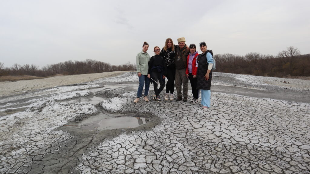 Для небольшой группы из шести человек, куда вошли журналисты «Призыва» и победительницы конкурса, краевед предложил увлекательный маршрут к грязевому вулкану Гладковские сопки в Кеслеровском сельском поселении.