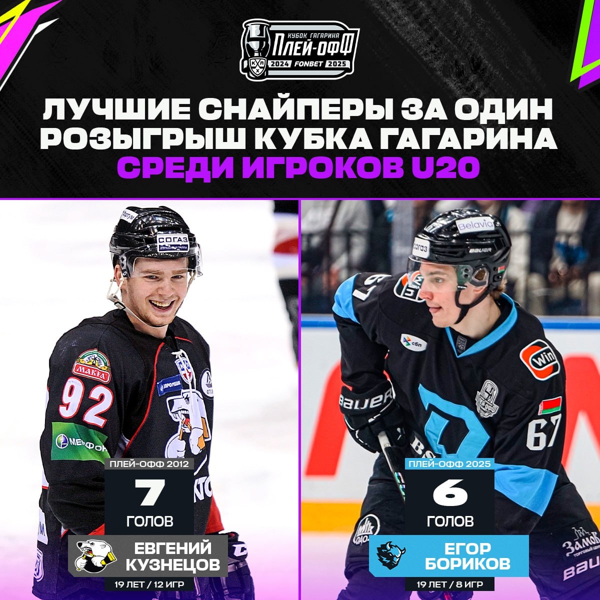 19-летний Егор Бориков 🦬 в шаге от повторения рекорда Евгения Кузнецова по голам за один плей-офф для молодежи. Сделает ли он это сегодня перед своими болельщиками в Минске? 🦬 x 🚜 0-2 в серии 19:30 мск 📺 📺 🏆#КубокГагарина