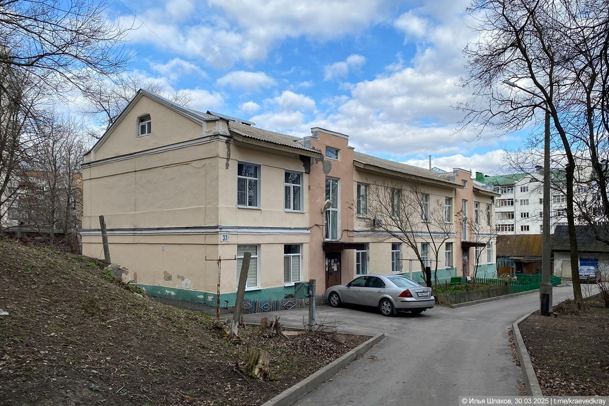 Жилой дом Сахаротреста (Курск, ул. Ленина, 37), 1935 г. Проект двухэтажного восьмиквартирного жилого дома был создан архитектором М. В. Георгиевским. Строительство осуществлено в 1935 г. Здание состоит из двух секций и представляет собой образец творческого и теоретического подхода к проектированию малоэтажных домов в эпоху конструктивизма. В основе проекта лежит идея бытового функционализма, который проявляется в рациональном решении плана здания, создании удобных квартир и соблюдении санитарно-технических норм, включая естественную освещенность, инсоляцию, вентиляцию, а также благоустройство и инженерное оборудование. Кроме того, в проекте было сведено к минимуму количество типоразмеров деталей и конструктивных элементов, что соответствовало государственной политике по упрощению строительных схем и конструкций. Каждая секция имеет ясно выраженный центр с акцентированным входом и хорошим сочетанием масс в целом. Пропорции и членения фасадов обусловлены назначением здания, особеннос