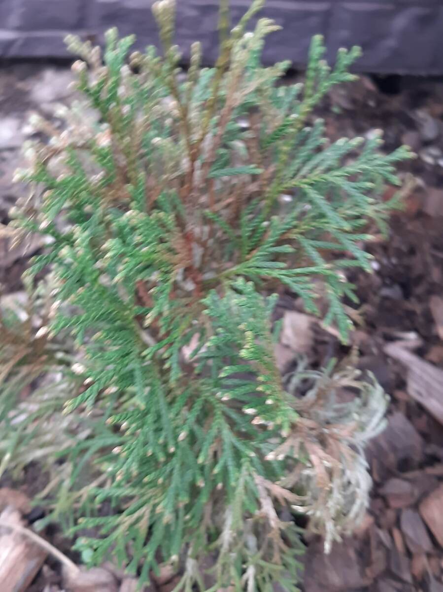 - После того как я снела укрытие с них ,одна стоит нормальная зелененькая, а другая сероватая. Не понимаю, что с ней. Это не налет ,просто хвоя серого цвета. Попробую обработать цирконом и ракурсов (баковая смесь).