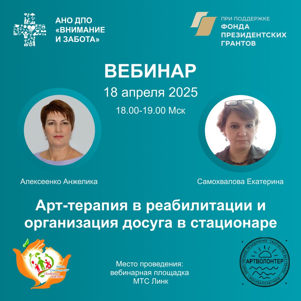 🔥Приглашаем вас на вебинар «Арт-терапия в реабилитации и организация досуга в стационаре