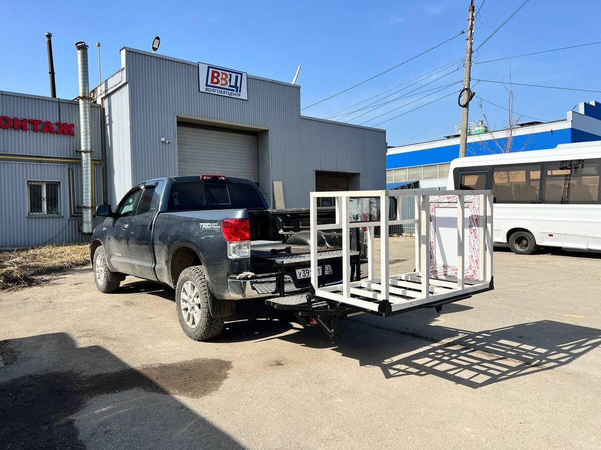 Образец индивидуального решения. Мы иногда беремся за выполнение сложных проектов по индивидуальным требованиям заказчиков, где необходимо создание уникальной конструкции. Наши специалисты могут реализовать любые технические задания, предлагая инженерные решения, соответствующие специфическим пожеланиям каждого клиента. Одним из последних выполненных нами проектов стала разработка специализированной транспортной системы для комфортного перемещения, погрузки и разгрузки крупных пород собак на значительные расстояния. Конструкция предназначена конкретно для установки на автомобиль Toyota Tundra и монтируется посредством крепления на тягово-сцепное устройство (ТСУ). Для её изготовления использовались высококачественные компоненты, включающие профильную стальную трубу, опорные подшипниковые узлы, амортизационные газлифты, облицовочные панели из алюминия и финишную обработку методом порошковой окраски. Реализация проекта заняла 10 рабочих дней, несмотря на высокую степень сложности и нео