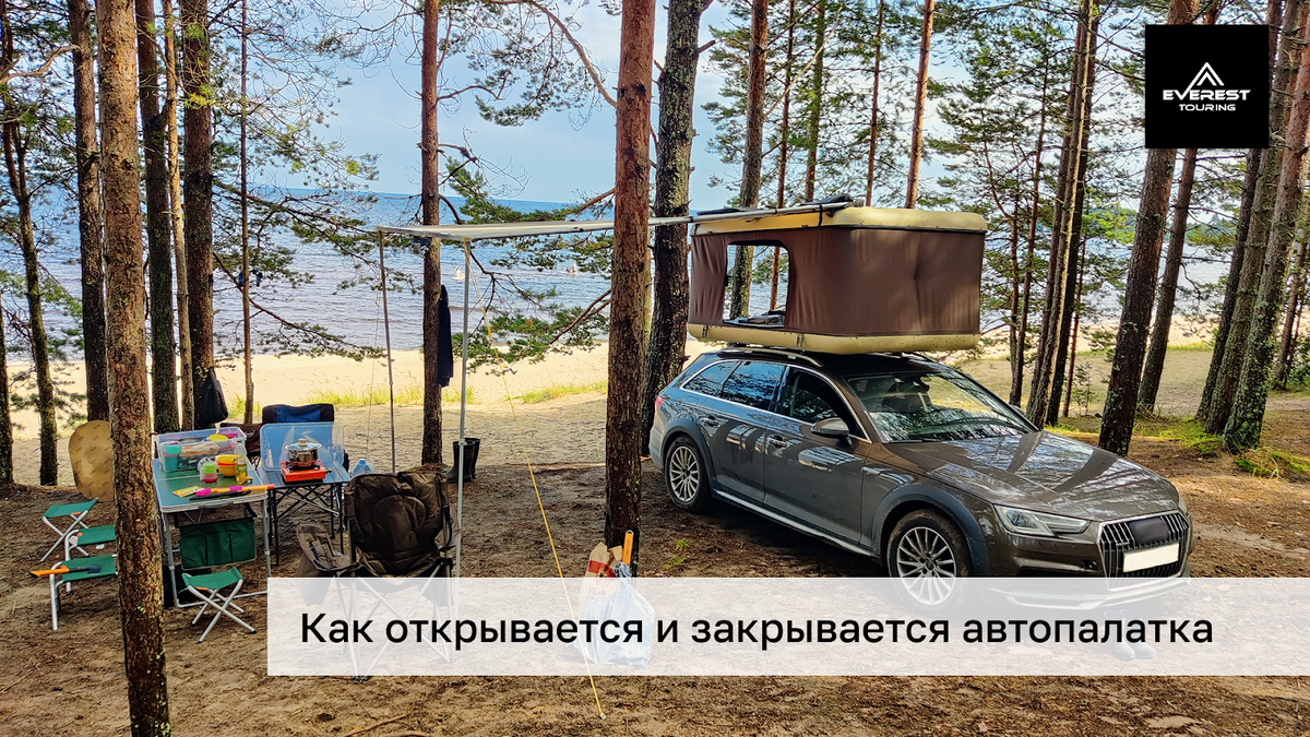 Вопрос об открывании и закрытии автопалатки — один из самых частых. В обоих случаях процесс займет не больше минуты, и справиться с ним можно без особых усилий. Показываем всё наглядно на уже установленном изделии. Шаг 1. Сначала нужно открыть четыре замка по бокам палатки, которые удерживают ее в закрытом положении. Для этого легонько потяните их на себя, не подсовывая внутрь руку, чтобы не прищемить пальцы, а затем отпустите. Шаг 2. Открыть палатку наполовину. Нужно взяться за ее крышу и толкнуть вверх. Вам будут помогать расположенные внутри газовые упоры, и автопалатка окажется в "промежуточном" положении. Шаг 3. Потянуть крышу на себя и вниз (как на видео). В результате вверх поднимется противоположная от вас сторона крыши автопалатки. Шаг 4. После этого поднимите вверх "свою" сторону, и крыша выравняется. Палатка почти готова к использованию. Забраться внутрь для отдыха можно по телескопической лестнице. Когда окажетесь внутри, останется сделать последнюю вещь. Шаг 5. Открепить д