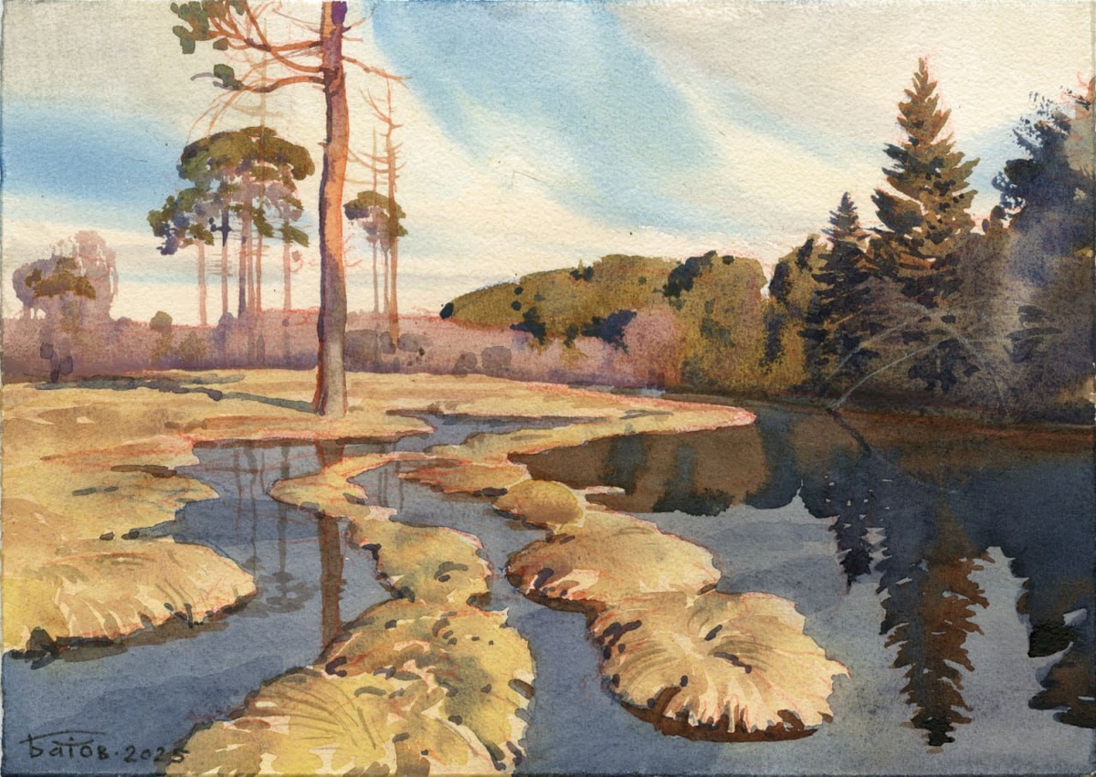 20250408 Весенний мотив / Spring motif / 21x30 см. Конструирование пейзажа. Constructing an imaginary landscape. Краски Pinax Extra. Бумага 100% хлопок Палаццо 300 гр. Акварельные упражнения по вторникам (Москва, Садово-Кудринская 25) "Арт галерея Москва". #акварель #живопись #watercolor #pinax_extra #palazzo_watercolor_paper #Изо #watercolorsketch #ArtBatDiversion #artLesson #мастеркласс