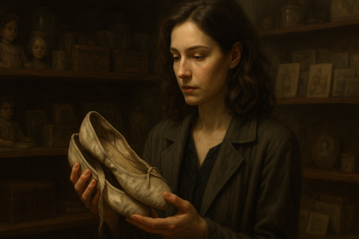 Этот рассказ написан на основе судеб балерин, пострадавших в 1930-е годы. Анна брела по антикварной лавке без цели. Её пальцы лениво касались фарфоровых кукол, пожелтевших открыток, медальонов с потускневшими портретами. Она искала не вещь, а ощущение. Что-то, что скажет: «Вот. Это — твоё». На нижней полке, рядом с лаковым сундучком, стояла пара старинных балетных туфель. Сшитые из льна, с вытертым носком и лёгким следом розовой ленты. На внутренней стороне — выцветшая надпись: «Л. М.» — Из Переделкино, — равнодушно сказал продавец, не отрываясь от телефона. — Кто-то из артистов. Балерина. Советский период, тридцатые, может, раньше. Анна подняла одну туфельку и провела пальцем по шву. Материя была холодной и неожиданно лёгкой. Будто в ней осталась память о полёте. Что-то защемило в груди. Она купила их, не раздумывая. И только выйдя на улицу, поняла, что руки дрожат. Вечером, поставив туфли на подоконник, Анна долго сидела в темноте. Свет от уличного фонаря ложился на пол, обрамляя сил