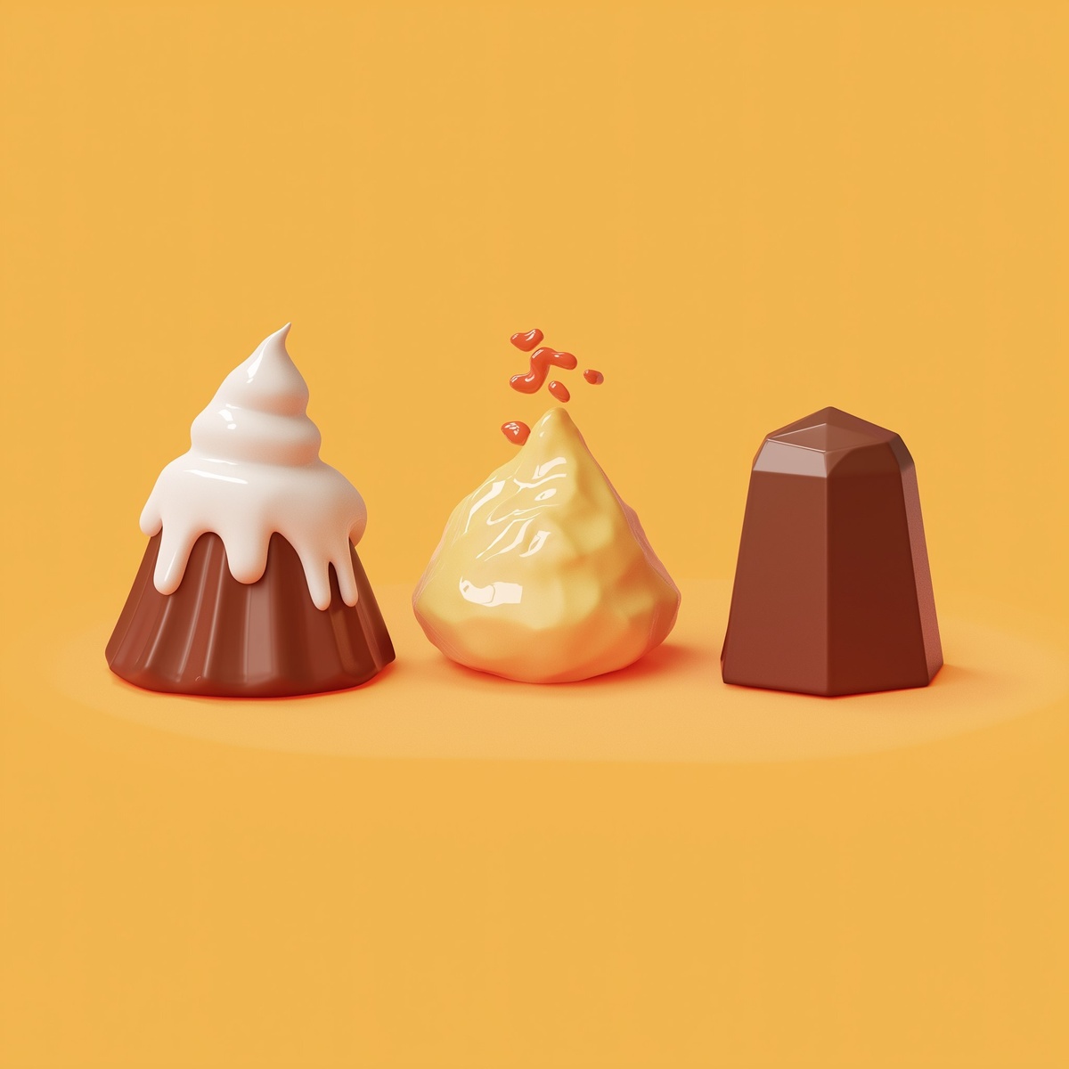 Создано на основе запроса: make cute 3 sticker of chocolate, volcano, and ice cube in cute, witty 3d low poly style for an ice cream brand