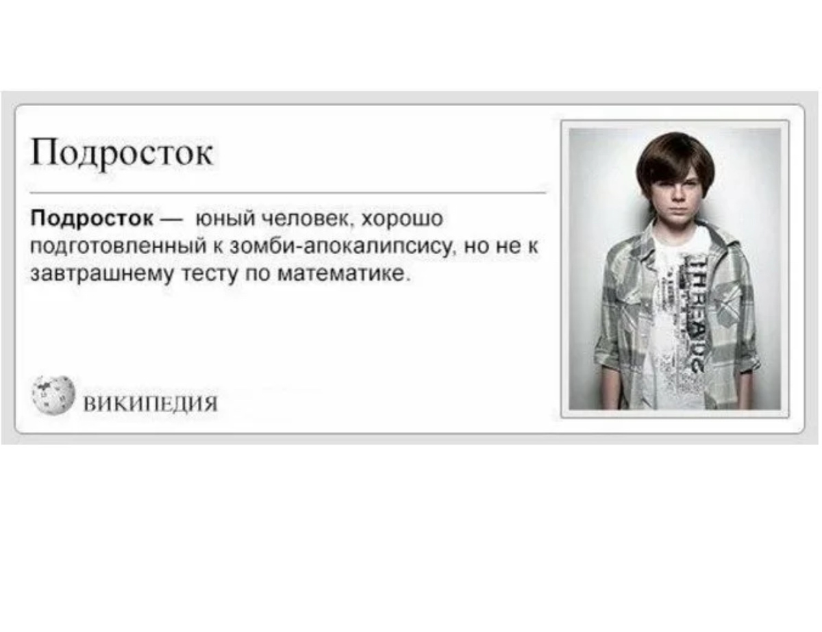 Отец заходит в комнату сына. Кровать застелена. В комнате чисто, все лежит на своих местах. На столе — письмо, подписанное: «Папе». С мрачным предчувствием он дрожащими руками открывает конверт. Дорогой папа! С тяжелым сердцем пишу тебе. Я познакомился с девушкой, и нам пришлось уйти из дома, пока вас с мамой нет, чтобы избежать ссоры. Мне так хорошо с Катей, я очень ее люблю. Но знаю, ты ее не примешь — из-за пирсинга, татуировок, кожаной куртки и того, что она твоя ровесница. Катя говорит, что мы будем счастливы. Дело не только в любви. Папа, она беременна. У нее есть старый фургон в лесу и дрова на всю зиму. Мы мечтаем о большой семье. Катя открыла мне глаза: оказывается, мариху@на безвредна. Мы будем выращивать ее сами и менять у соседей на кок@ин и экст@зи. Она еще и в секте состоит — очень набожная. Не переживай, пап. Мне уже 15, я сам о себе позабочусь. Надеюсь, когда-нибудь ты увидишь внуков. С любовью, твой сын Иван. P.S. Пап, это всё неправда. Я у д