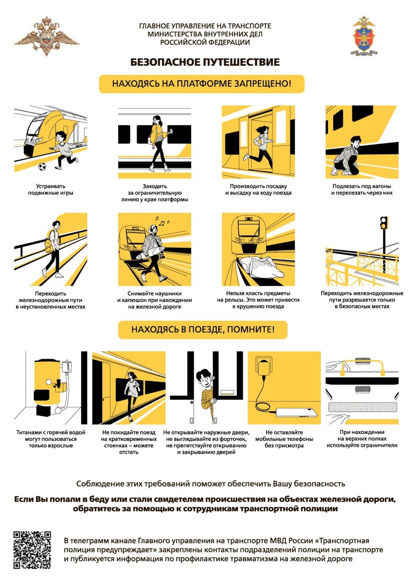 👮♂️По данным Минтранса России за 2024 год в зоне движения поездов травмировано 1 684 чел., в том числе со смертельным исходом – 1 185 случаев. Особую тревогу вызывает рост травмирования детей и подростков: по отношению к данным 2023 года количество травмированных увеличилось на 24,5 % (с 106 до 132 человек), в том числе со смертельным исходом на 24 % (с 71 до 88 человек). Результаты проведенного анализа свидетельствуют, что основными причинами травмирования граждан являются нарушение правил безопасности и недостаточная осведомленность о последствиях рискованного поведения в зоне повышенной опасности, часто усугубляемое использованием атрибутов, препятствующих оперативному реагированию на изменение внешней обстановки (использование наушников, капюшонов и других отвлекающих факторов). Запомните: 🔴Переходить железнодорожные пути можно только в установленных местах, пользуясь при этом пешеходными мостами, тоннелями, переездами. 🔴На станциях, где мостов и тоннелей нет, граждане должны