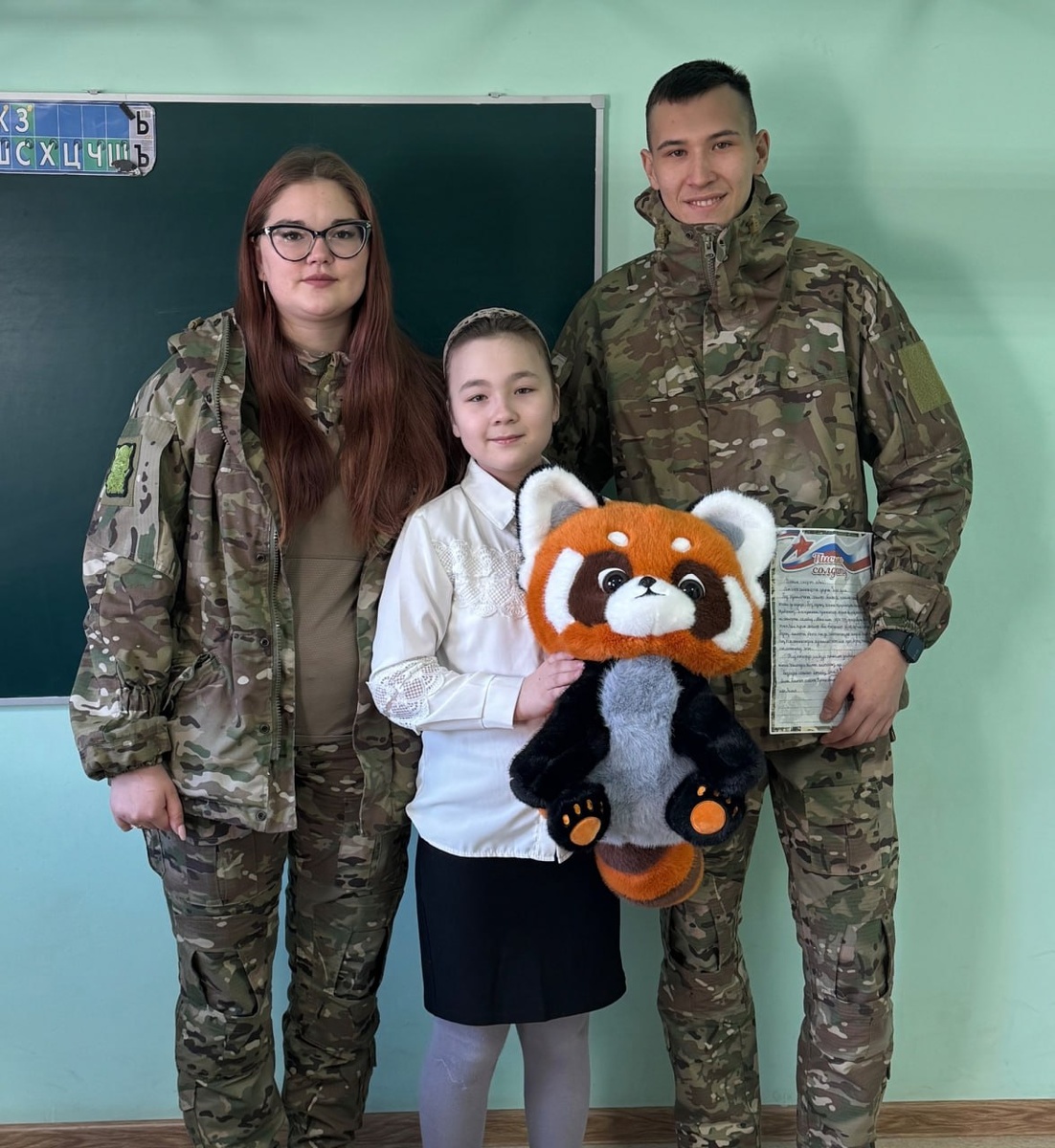 Чутай башлангыч мэктэп-балалар бакчасындагы балалар «Солдатка хат» акциясендэ катнашып, махсус хәрби операция зонасындагы солдатларыбызга хатлар язганнар иде. 4 сыйныф укучысы Мэмиева Зилия язган хатны алган, Балтачыбыз медиклары Татарин белэн Мальвина, очрашуга килделэр. Зилиягэ истэлек булэге дэ тапшырдылар.