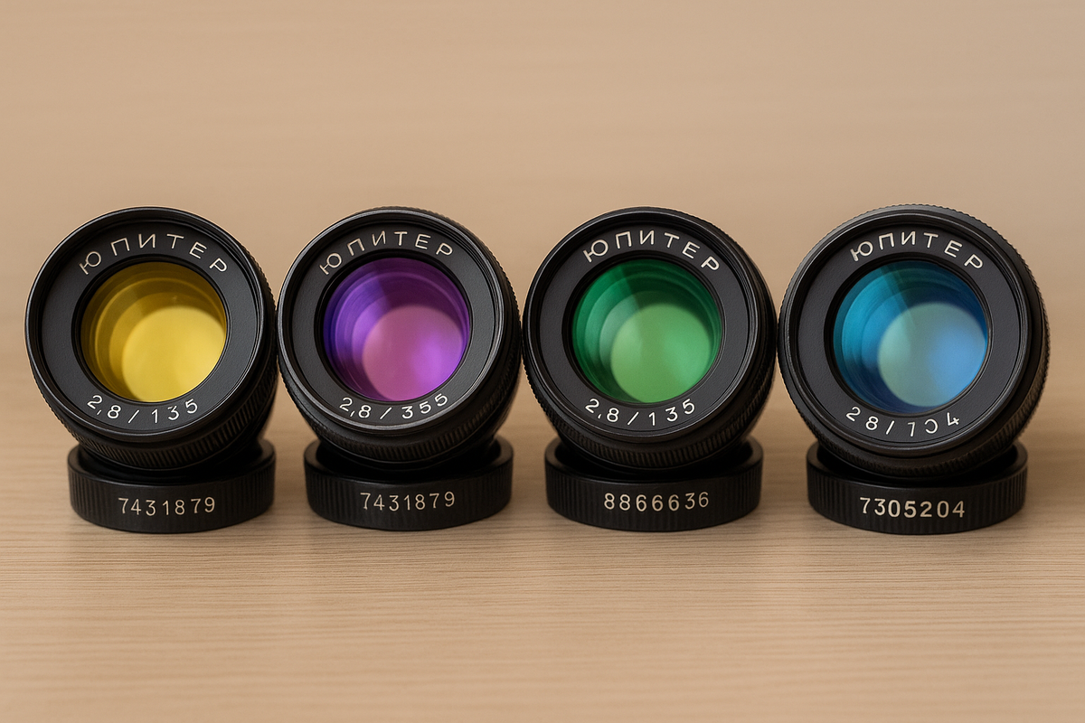 Жёлтое — чаще встречается на старых линзах и иногда даёт изображению винтажный, чуть тёплый тон.