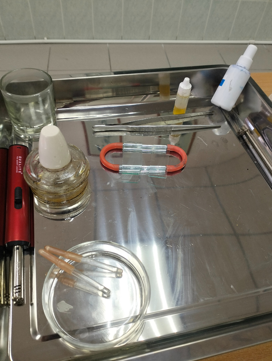 Иногда самые интересные открытия ждут нас не в лабораторных колбах, а в самых обыденных вещах. Так случилось и на этот раз — всё началось с простой баночки, в которой остался рассол от домашних огурцов. На поверхности медленно формировалась белая пушистая шапочка — плесень. Её нежная структура, словно хлопковое облачко, сразу привлекла внимание. Я принесла баночку в лабораторию — не просто из любопытства, а с намерением изучить, что же там происходит на микроскопическом уровне. С помощью специальной иглы мы аккуратно захватили немного мицелия и перенесли на предметное стекло. Добавили каплю воды и осторожно накрыли покровным стеклом — и вот, первый препарат готов. Под микроскопом плесень раскрылась во всей своей сложности. Это был явно не простой гриб — на гифах (нитях грибницы) были хорошо видны маленькие палочковидные структуры, будто разделяющие их на участки. Вероятно, это перегородки — септы, характерные для более сложных, высших грибов. Повсюду попадались дрожжи — почти прямоу
