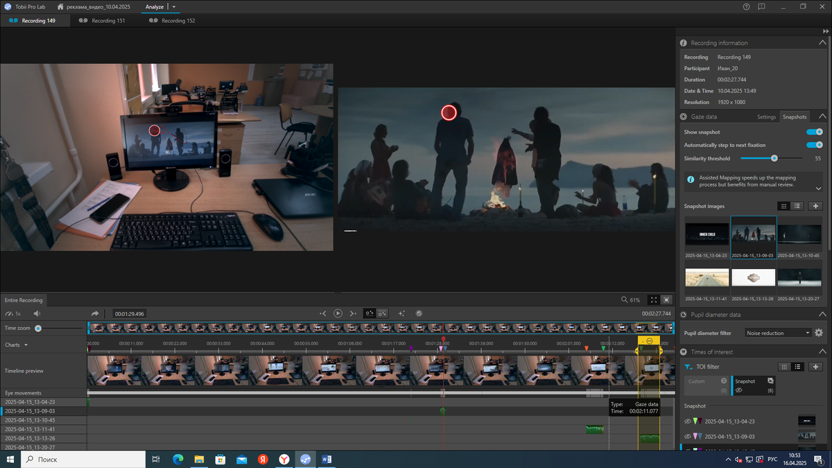 1. «Эффект Джокера» — почему мы не можем отвести взгляд от хаоса** Пример: В трейлере «Джокера» (2019) пик расширения зрачков пришелся на сцену, где Хоакин Феникс смеется в гриме. Айтрекинг показал, что 73% зрителей неосознанно повторяли траекторию его взгляда. Кейс: В тестах трейлера «До встречи с тобой» (2016) зрители-женщины фиксировались на каплях дождя на лице героини на 0.3 сек дольше, чем мужчины — это совпало с более высоким рейтингом просмотра среди женской аудитории. Пример: В тестах юмористического шоу Netflix выяснилось, что искусственный смех в зале снижает фиксацию на шутках на 17% — зрители подсознательно чувствуют фальшь. Кейс: В исследовании политических дебатов айтрекинг выявил, что после провокационных фраз 80% зрителей переставали замечать инфографику на экране — их внимание «залипало» на говорящем. Факт: Кадры с кошками в рекламе удерживают внимание на 1.5 сек дольше, чем с собаками — из-за их непредсказуемых движений. Пример: В трейлере «Солнцестояния» (2019) Ари