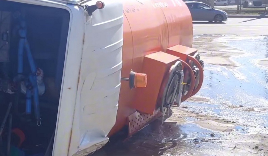 В Курске у перевернувшегося бензовоза дежурят спасатели на случай воспламенения