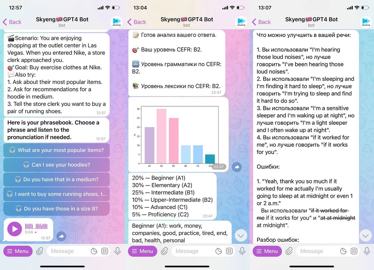 Используйте AI для создания персонализированного контента. - Обратная связь: Предоставьте пользователю возможность оставить отзыв о боте.