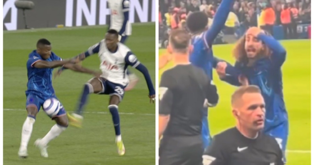 Центральный матч тура между «Челси» и «Тоттенхэмом» (1:0) выдался довольно скандальным. По крайней мере, так могут считать игроки и болельщики «синих». Хавбек «шпор» Пап Матар Сарр забил шикарным дальним ударом, но вмешался VAR. Сенегалец в развитии атаки очень грубо сыграл на Мойсесе Кайседо, попав тому ногой в область колена. Судья не только отменил гол, но еще и рассматривал вариант с удалением. В итоге ограничился желтой карточкой. Когда арбитр смотрел повтор, к нему сзади подкрались Марк Кукурелья и Ливай Колуилл. По их реакции было понятно, что фол очень жесткий и стоит удалять Сарра. Но решение принимают не они. А как вам кажется, тянет ли на удаление?