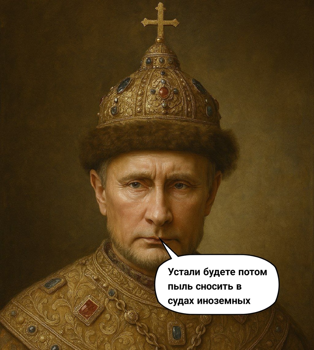 Купцы из США готовии заити на купище Руси-матушки наместо купцов немецких да иных королевств Европы. Пакощь деньги (инфляция) на Руси-матушке во след идущие месяца прострети (перестанет) падаты да «приедет в загсагда (к норме) к зиме».- Набиуллина. «Соумь надобе тяжко работать ради вращатыся благих сношений (гусары, то значение этого слова, о котором вы подумали, появилось сильно позже) с Русью-Матушкой» - Мария Захарова. «Витязям да богатырям, боронивших рубежи Руси-матушки от татей окраинных, наредети заступниками земли русской».- Дума. В Руси-матушке буде ослабина подати на свадьбу до 300 тысяч рублей. На Руси претили лишать Олафа (премии) на праздьнъ, ежели делатель (работник) «худо дѣло (работал)», вѣдити суд. Праздьнъ Олафа – это про поровнанье, а не KPI. На Руси начати уголовное наказа́ние за залазное (опасное) ристание на авто. Русичам прещает вира за не подасту 3-НДФЛ — 30% от мыта и поверх того 20-40%. Русичам прещает до 10 лет за вдачу аккаунта в Вацап мощьна (мошенн