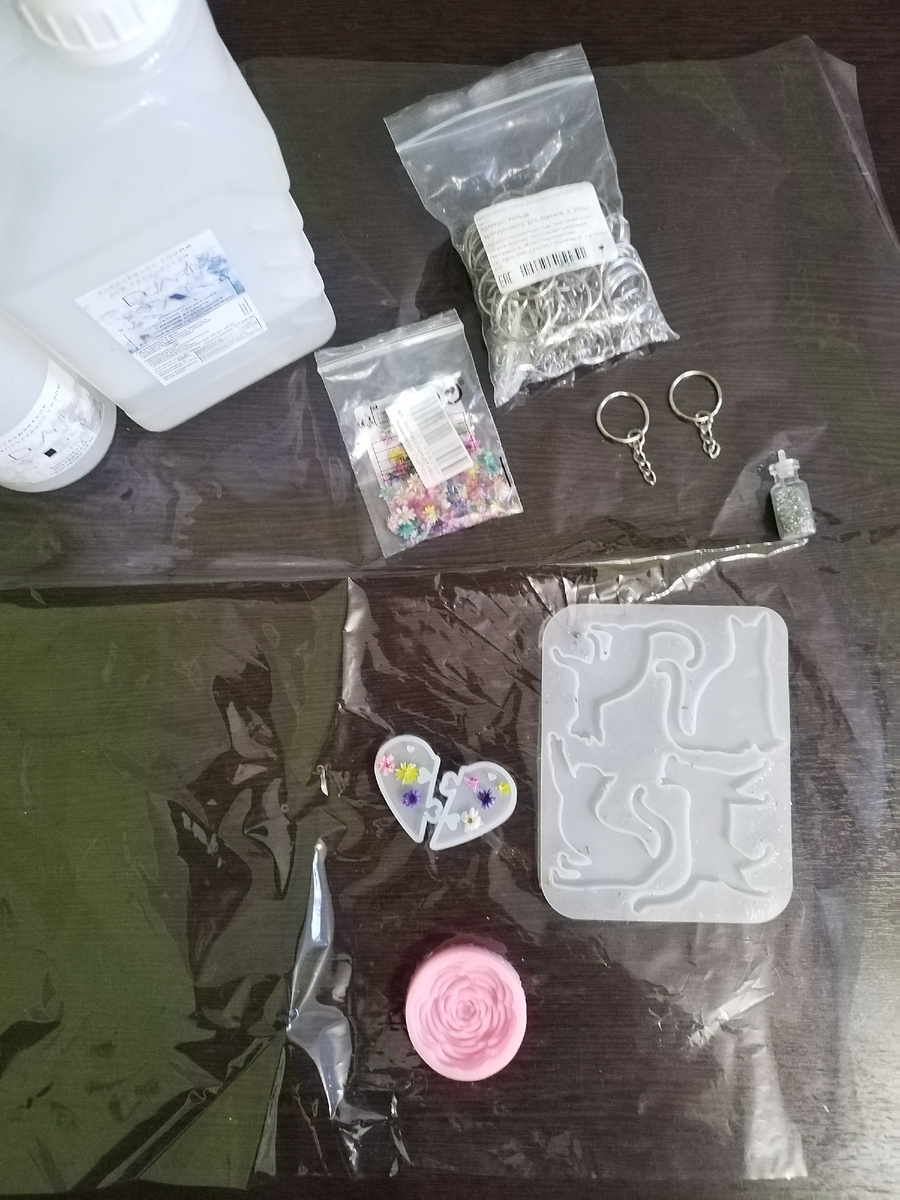 Давно хотела попробовать поработать со смолой , тем более что я давно работала с гипсом и молдами. Сейчас очень много форм для заливок и я приобрела некоторые для брелков. Взяла ещё блёстки , мешочек сухоцветов , ну и конечно брелочные колечки. Чтобы смола хорошо затвердела и не была мягкой , не гнулась , когда я замешиваю обычную пропорцию 2 к1 (смола , отвердитель) , то обязательно добавляю отвердителя ещё чуточку побольше. Смолу я поделила и в один стаканчик добавила розовых капель красителя. Перед заливкой половинок сердечек вложила сухоцветы . Блёстки в лапки кошечкам я посыпала и распределила с помощью зубочистки , а в смолу добавила черной краски , затем аккуратно опустила к ушкам цепочку брелочка и оставила всё застывать. Ну красота же! И так просто! \