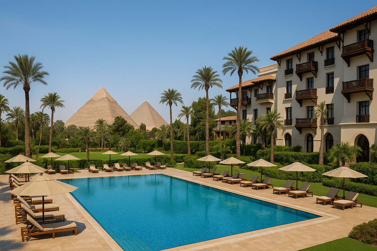 Роскошный отель с видом на пирамиды Гизы, окруженный обширными садами. Предлагает номера с элегантным интерьером и современными удобствами.