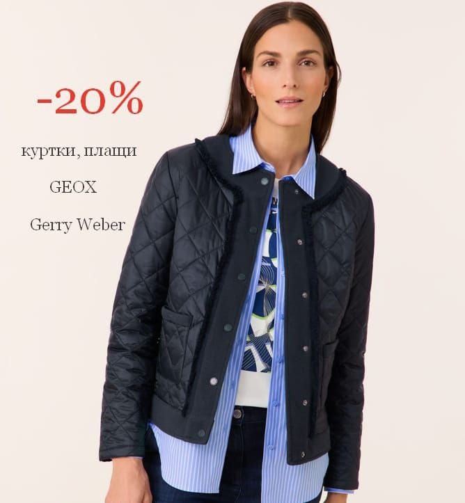 -20% скидка куртки, плащи Geox, Gerry Weber
