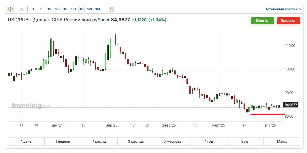 Примерно с середины марта на графиках валютных курсов начала вырисовываться динамика, очень напоминающая режим фиксированного курса. Чем дольше она продолжалась, тем больше я убеждался в том, что мне не показалось. А в последние два дня я убедился в этом на 100%. Смотрим на график, видим эту невероятно ровную линию, которой за последние три года не была аж никогда. Вот вообще, наоборот, колебания с каждым разом становились все сильнее и сильнее (просто посмотрите, как вел себя график до этого в последние месяцы). Это что у нас, экономика прям стабилизировалась как никогда? Ну а последние 2 дня - это вообще нечто. Мировые рынки валятся. Вообще все! Фондовый рынок России валится рекордно 13 дней подряд (такого не было вообще никогда в истории). Все виды сырья валятся. Мировой валютный рынок дико скачет. Нефть обвалилась уже процентов на 15 за 2 дня. А что рубль? Ну чуть-чуть сильнее пошатался, чем до этого, и остался на том же месте. При хотя бы наполовину рыночном курсе, такое в текущей