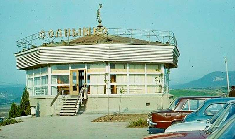 60-70 лет назад в Крыму почти не было загородных ресторанов, но спрос на такое присутствовал. Так, в советское время на Старом Севастопольском шоссе на храме Воскресения Господня были сняты кресты, а внутри устроен ресторан. Летом 1963 года в этот ресторан Никита Хрущёв пригласил правителя Афганистана Мохаммеда Захир Шаха, король был не дурак, увидев перестроенный алтарь под барную стойку, Захир Шах сразу вышел, "в храме не едят, в нём молятся" бросил на прощание генсеку, это был международный скандал. благодаря афганскому королю ресторан в храме был закрыт навсегда. Также с подачи Хрущёва появился ещё один ресторан. Однажды Никита Сергеевич ехал из Ялты в Севастополь и у Балаклавы решил отдохнуть и перекусить. Генеральному секретарю быстро соорудили шатёр, и всё прошло хорошо. На следующий год Хрущёв с удивлением увидел на месте, где был шатёр, капитальное здание в виде шатра, это был новый ресторан "Солнышко". Далее советские фотографии из интернета, если знаете авторов, пишите в ком