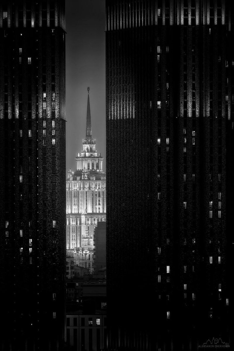 Сталинская высотка сквозь башни Пресня Сити🌔