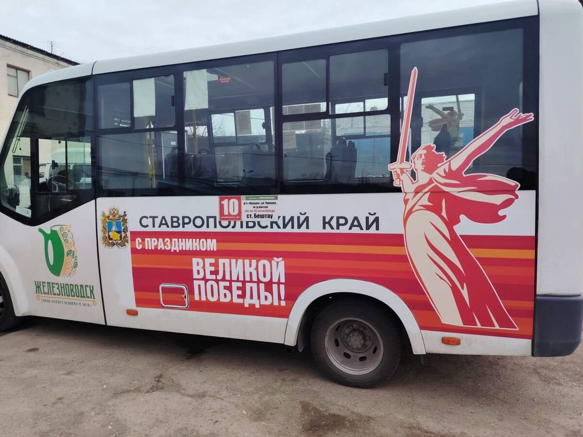 Железноводск украсил общественный транспорт символами юбилея Победы